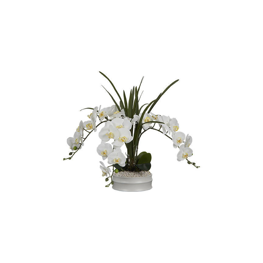 254034 D&W Silks White Phael Orchids in Matte White Bowl quantity