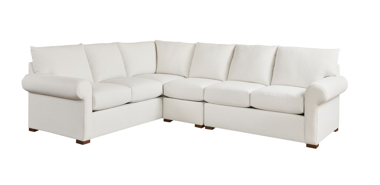The Hanover L-Shaped Sectional is all about comfort and great transitional design. There’s plenty of space for family and friends to relax in the luxury of soft, attached bed pillow back cushions and top-stitched seat cushions. Low-block legs with a Brindle finish complement the fabric options. Choose from Cloud, Zinc, or Driftwood Revolution fabric. Also available as Regular Sofa or Sleeper Sofa.