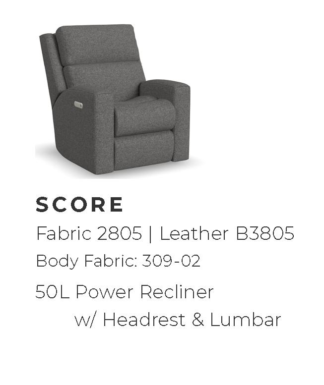 / 2805-50L 057-80 Flexsteel Score Fabric Power Recliner w/ Power Headrest & Lumbar