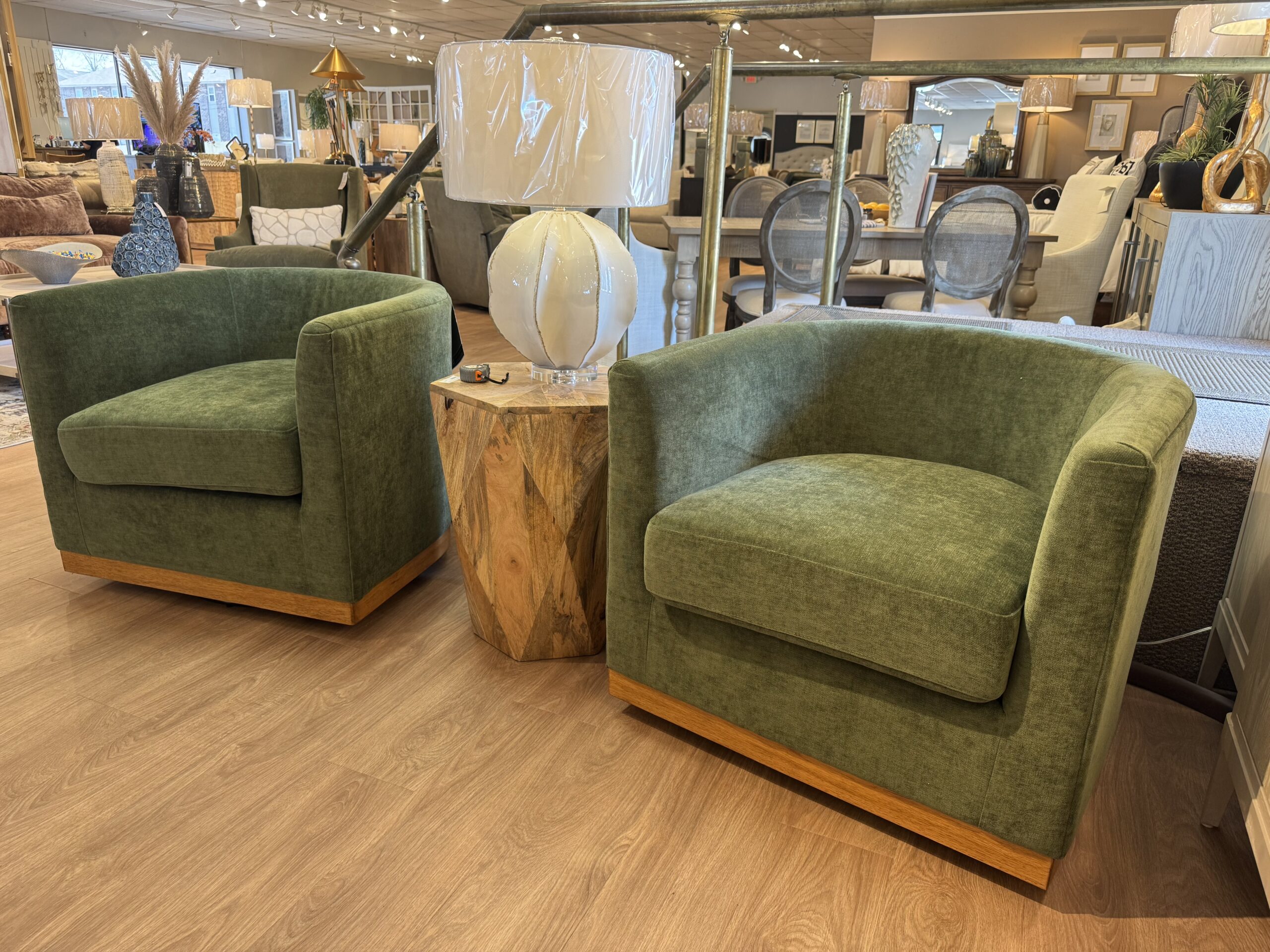 Take contemporary style for a spin with this accent chair. Handsome in a deep forest green, it adds a splash of sophistication to a reading nook or living room. The chair’s handy swivel base ensures you can always find your perfect angle, while wood accent trim perfectly punctuates the look.