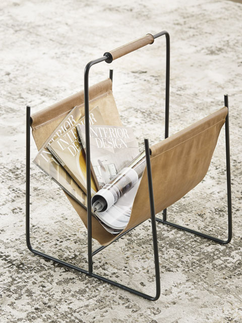 Periodicals piling up? Keep every magazine and catalog effortlessly corralled with this magazine rack. Classic brown leather and a complementary black frame combine sleek style with functional storage. Whether this piece is holding your favorite reads or other essentials, its aesthetic is well-suited to your contemporary home.
