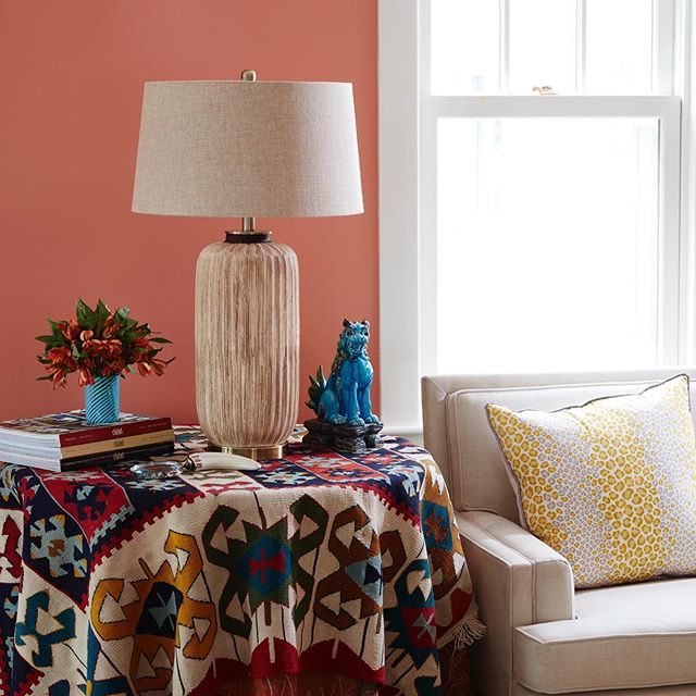Textured earth tone ceramic lamp with an antique brass base. 16″ x 18″ x 10″H Hardback in Oatmeal Linen.