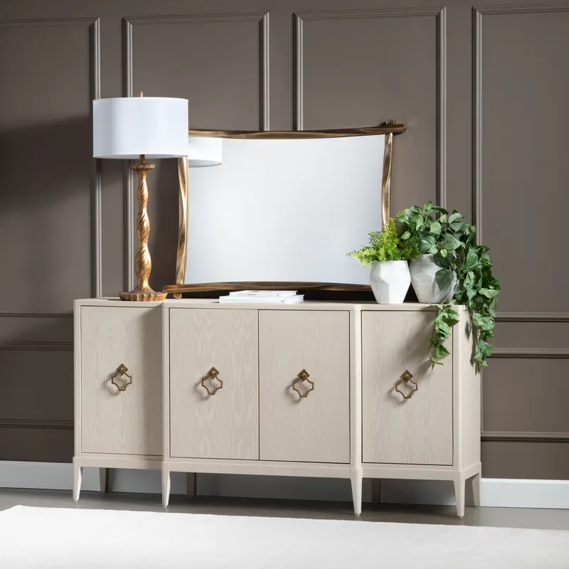 Reminiscent of old-world candlesticks the Crestview Collection Amherst Table Lamp is made from cast resin and boasts a multi-step antiqued gold finish. The ivory linen shade features an interesting baffled detail to diffuse the light creating a soft, warm glow. 18 x 18 x 40.5 (in)
