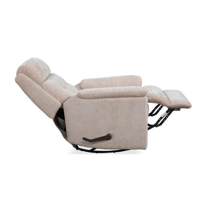 Looking for a more elevated recline experience? Sophisticated is a medium-sized option that provides ample space to kick back in cloud-soft comfort, with an innovative recline system and swivel. The recliners pull tuft back design gives a clean look while providing back support. Relaxation of the future, the Sophisticated Swivel Gliding Recliner has everything you need for elevated relaxation. 44H x 38W x 41L