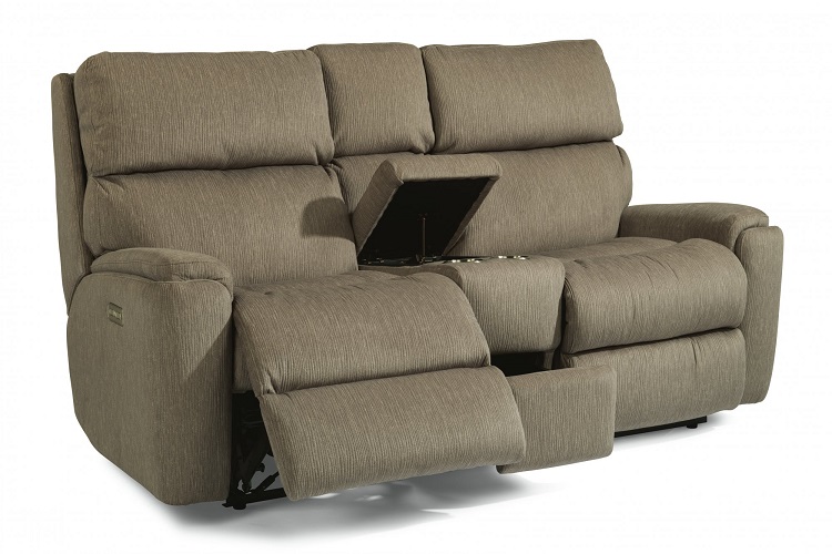 Traditional frame with modern features. Rio’s traditional frame is highlighted with subtle back wings and inset padded armrests that peek up for an interesting appeal. Its divided back cushion provides support all the way from your neck down to your lumbar region for full support. A power reclining mechanism lets you change angles effortlessly from an upright to a fully reclined position, and a power button control allows you to independently adjust the headrest for custom relaxation. Keep your remotes, books and more tucked away in the center storage console, which includes two cupholders for drinks.