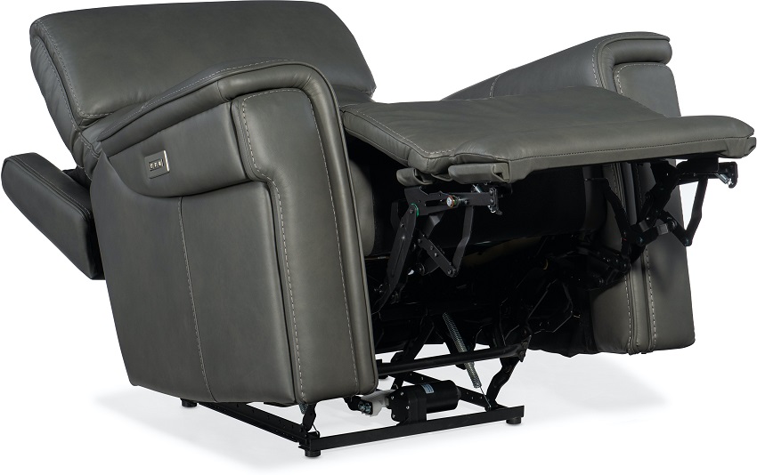 Width: 40 1/2″ x Depth: 42″ x Height: 42 1/2″ Sahara Dorian Gray Leather. Bustle style back, Zero gravity power recline, Power headrest, USB Port, Adjustable lumbar support, Pop-out arm panel with metal cupholder.