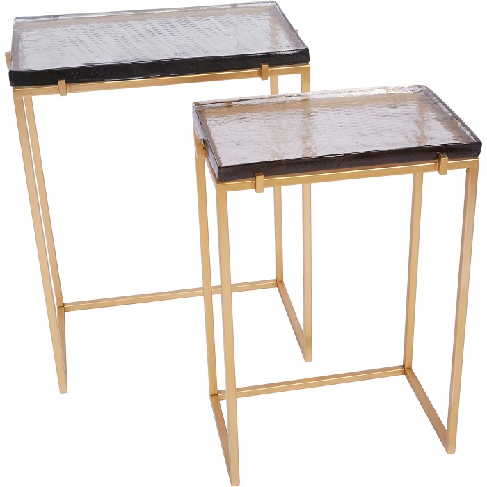 TA-4299 Old World Designs IVAN GOLD NESTING TABLES WITH THICK CAST GLASS TOPS